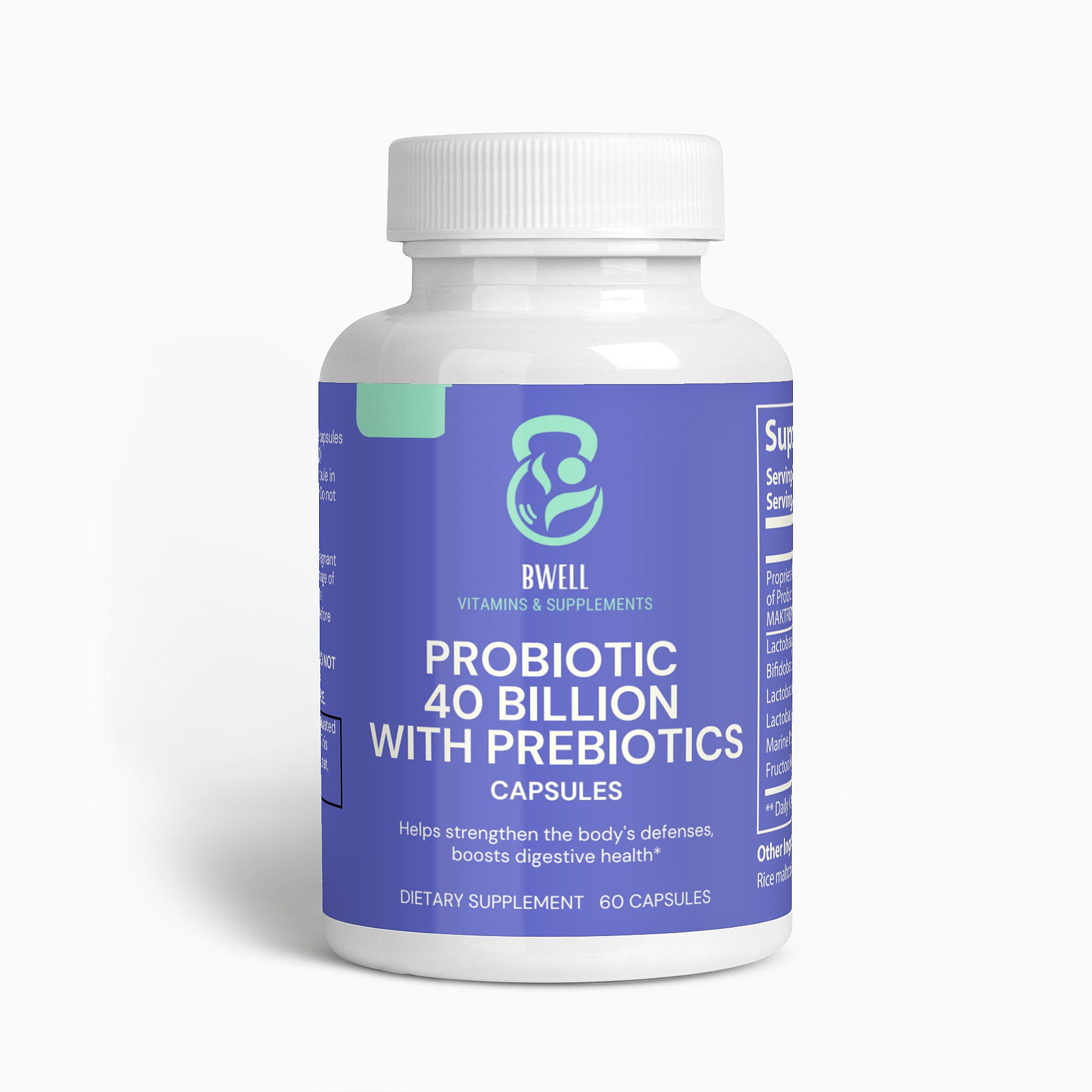 Probiotic 40 Billion with Prebiotics is a blend of four probiotic strains: Lactobacillus Acidophilus, Bifidobacterium Lactis, Lactobacillus Plantarum, and Lactobacillus Paracasei.